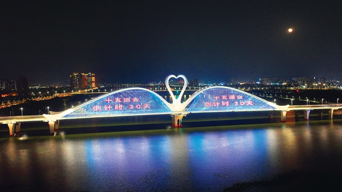 鵝城大橋亮燈喜迎十五運(yùn)會(huì)倒計(jì)時(shí)一個(gè)月